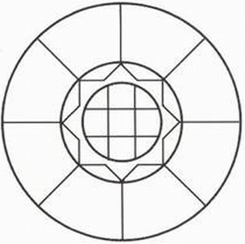(2)看5秒后闭眼5秒,同时暗示自己在闭眼睛时让图像尽可能长时间地停留在眼前。睁开眼后,看卡片背面的黑白曼陀罗图像,并将它颜色回忆出来;