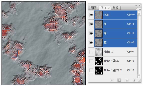 本教程部分纹理效果实在通道里面完成。这样做的好处是可以方便调用。很多滤镜效果可以使用现有通道的纹理。这样省去了重新制作纹理的过程。