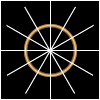 4、上加一层,画一个像素高的水平线条,使其位置在圆环的中心线上,再画一个像素宽的竖直线条,使其位置在圆环的中心线上,十字线条的中心点也该是圆环的中心点, 结果如下图:
