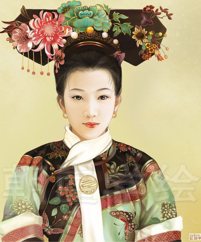 很喜欢德珍的画,华丽繁复的笔法看得人眼花缭乱。自己临摹了一张,发个绘画过程上来和大家一起分享,希望高手们不要吝惜批评指正。