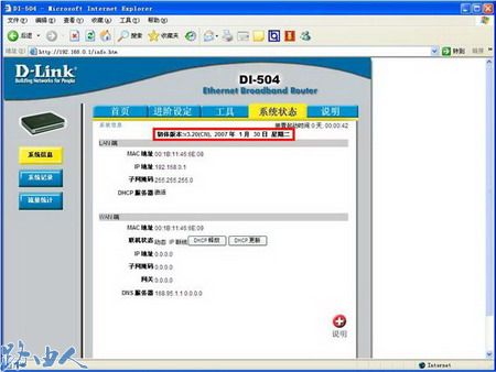 (5)升级成功后,系统会重新进入配置界面,可以在系统状态下看到您升级之后的韧体版本号以及相应的日期。