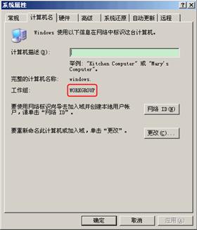 (1)不在WORKGROUP工作组的计算机,可点击更改按钮进行更改。