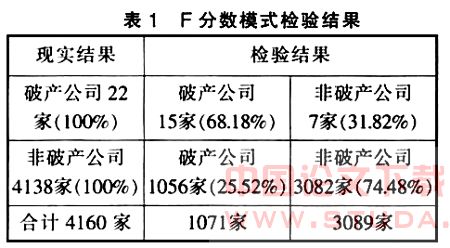 F分数模型与Z分数模式中各比率的区别就在于其W3、W5与Z分数模式中W3、W5不同。F分数模式中的五个自变量的选择是基于财务理论,其临界点为0.0274;若某一特定的F分数低于0.0274,则将被预测为破产公司;反之,若F分数高于0.0274,则公司将被预测为继续生存公司。