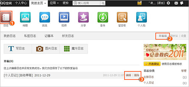怎么样编辑或删除已经保存好的QQ空间日志草稿?